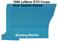 The color choices include black, bronze, blue, gold, parchment, red and turquiose. These door panels are available for coupe and convertible vehicles. You may choose to purchase a complete set $239.00, front door panels only $159.00, or rear quarter panels only $89.00. for special order colors or materials, please call If you are not sure which color you would like we will mail you samples for free. see all 1966 LeMans/GTO parts |