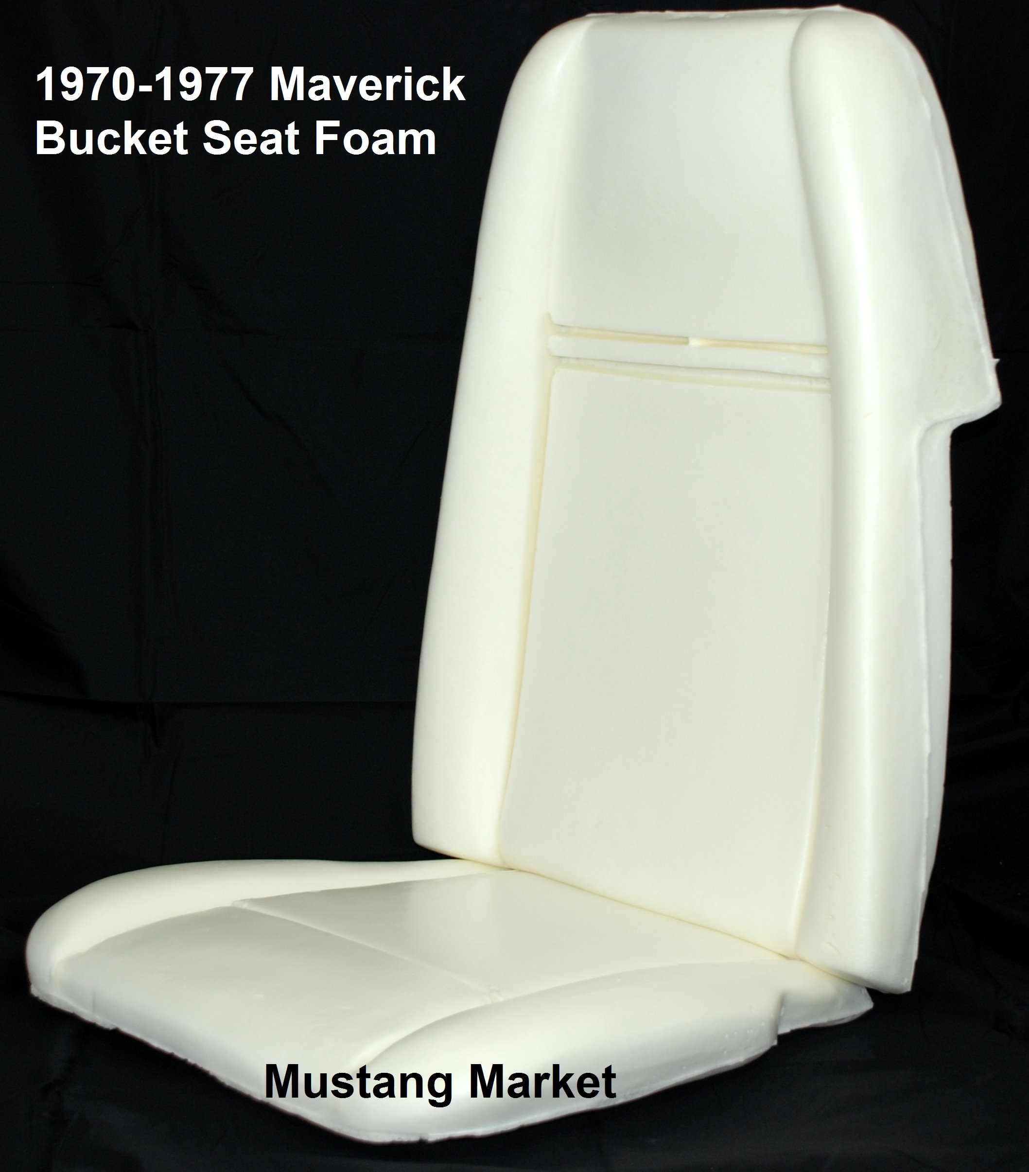 We make our 1975 Maverick hi-back bucket seat foam in our factory in Virginia. Created from Ford originals, our 75 Maverick hi-back bucket seat foam buns are made to replace your old worn out factory seat pads. This replacement seat foam is the correct fit and consistency to work perfectly with your new upholstery.