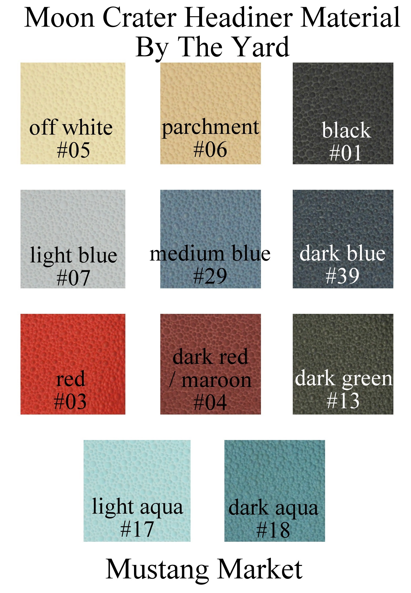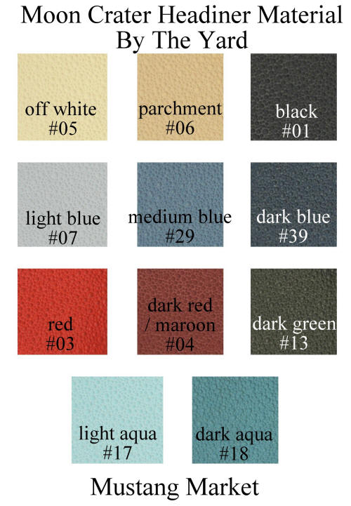 We now offer uncut and unsewn automotive moon crater headliner vinyl material by the yard or by the piece. This headlining fabric is perfect for recovering sail panels or sunvisors of your car or truck. Or you can use it to have a custom headliner made for a pattern we do not offer.This headlining material is found in many Ford, Lincoln and Mercury models from 1960, 1961, 1962, 1963, 1964, 1965, 1966, 1967, 1968, 1969 and some 1970 models.